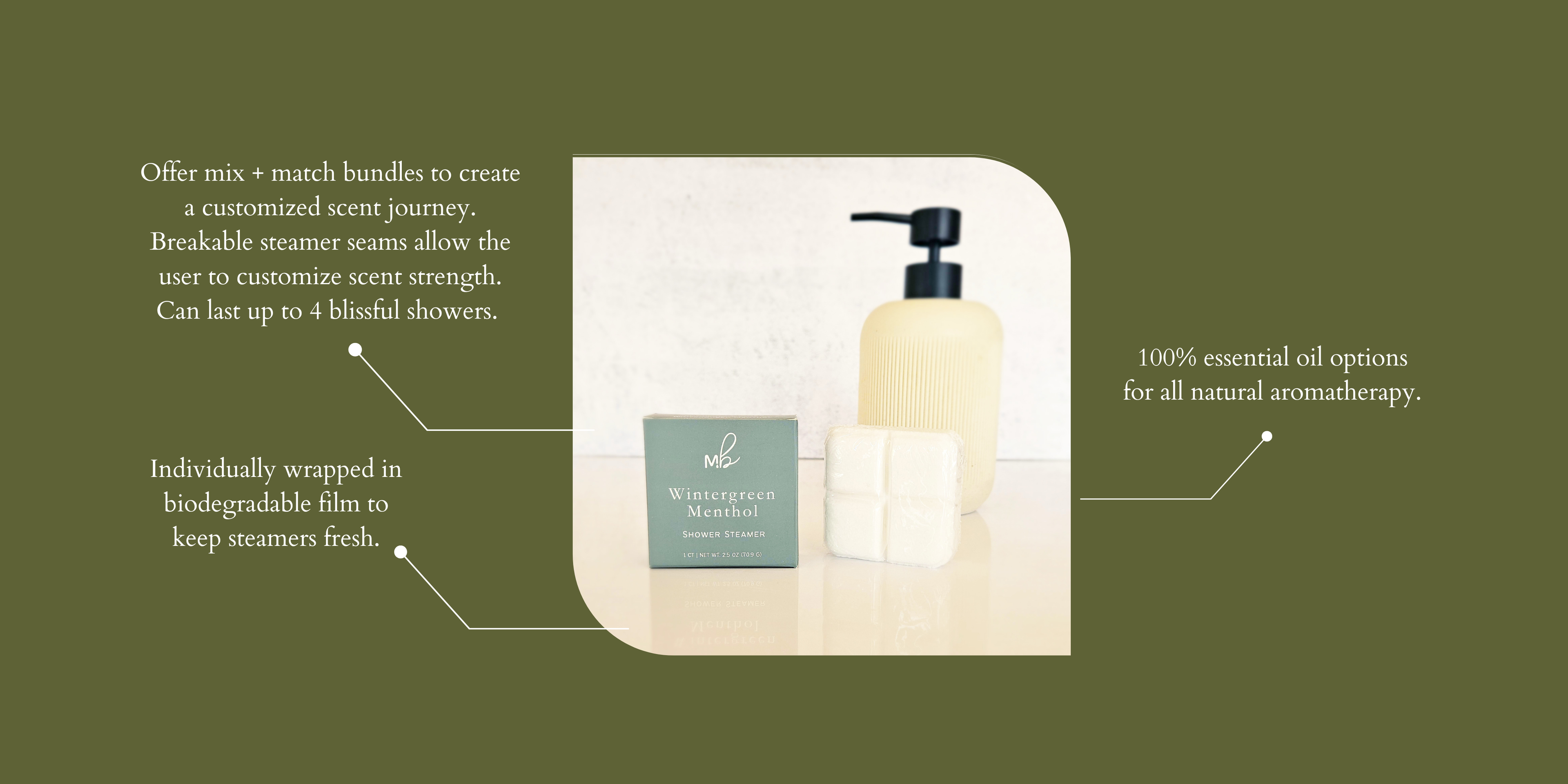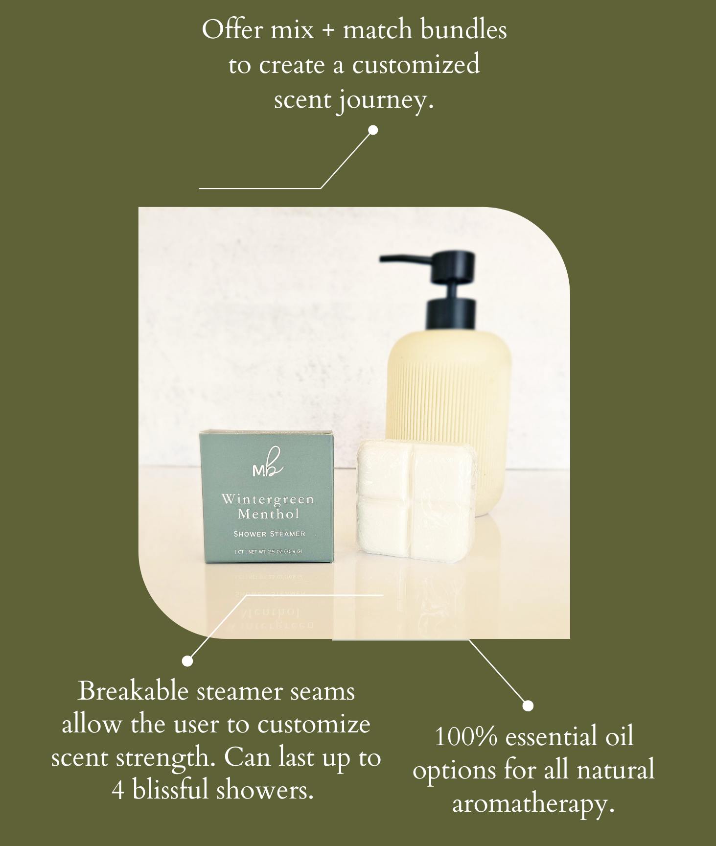 We create concentrated shower steamers available in multiple scents, sizes, and packaging so you can choose what best fits your customers' needs.